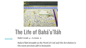 Lesson 9: Baha’u’llah has brought us the Word of God and His Revelation is His most precious gift to humanity